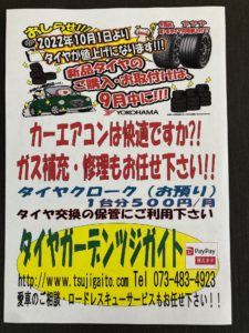 10月1日から、ヨコハマタイヤがタイヤ価格の値上げを発表されました・・・(各メーカーさんで値上げ時期が異なります。)