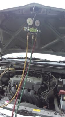 お客様のおクルマのエアコンに効きが悪いので、エアコンガスを補充させていただきました。